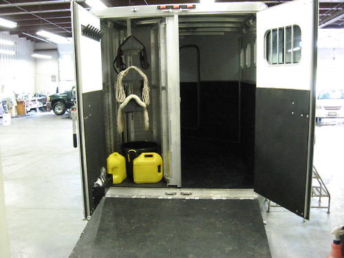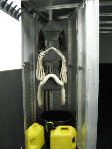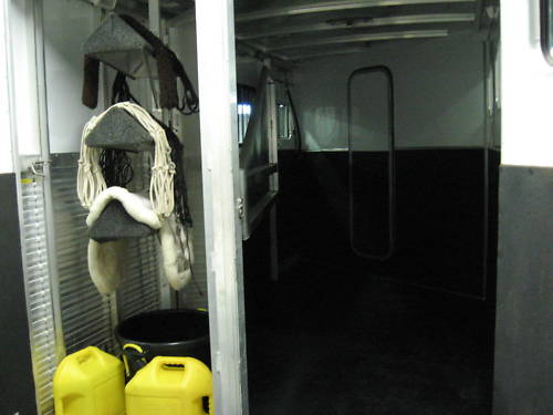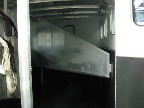 Fold-up rear tack wall (lined one side) with one removable saddle rack and one dome light