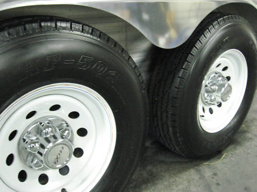 Five 16" 6 hole steel wheels with five bias tires (includes spare).