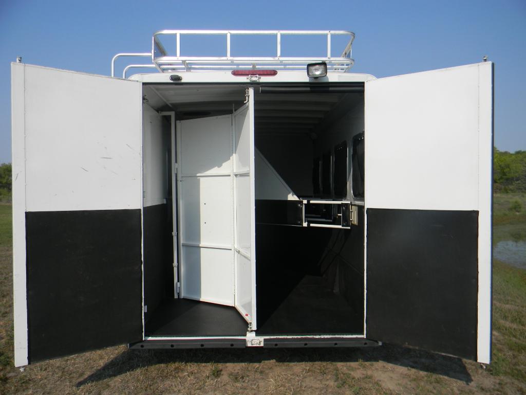 Feeding area just below windows on left side of trailer