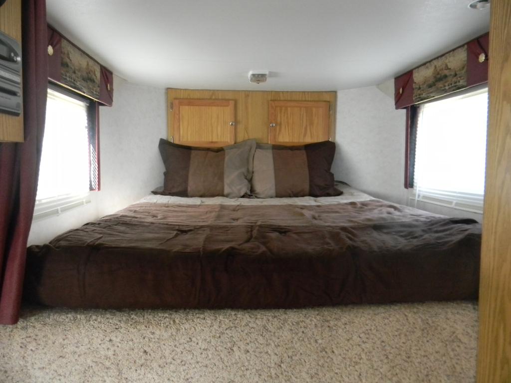 Loft area has full size bed w/ new comforter set & pillows