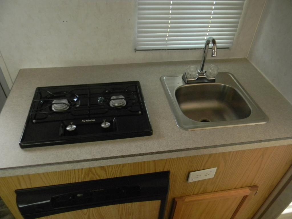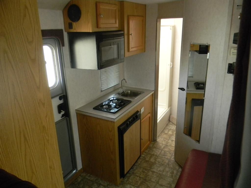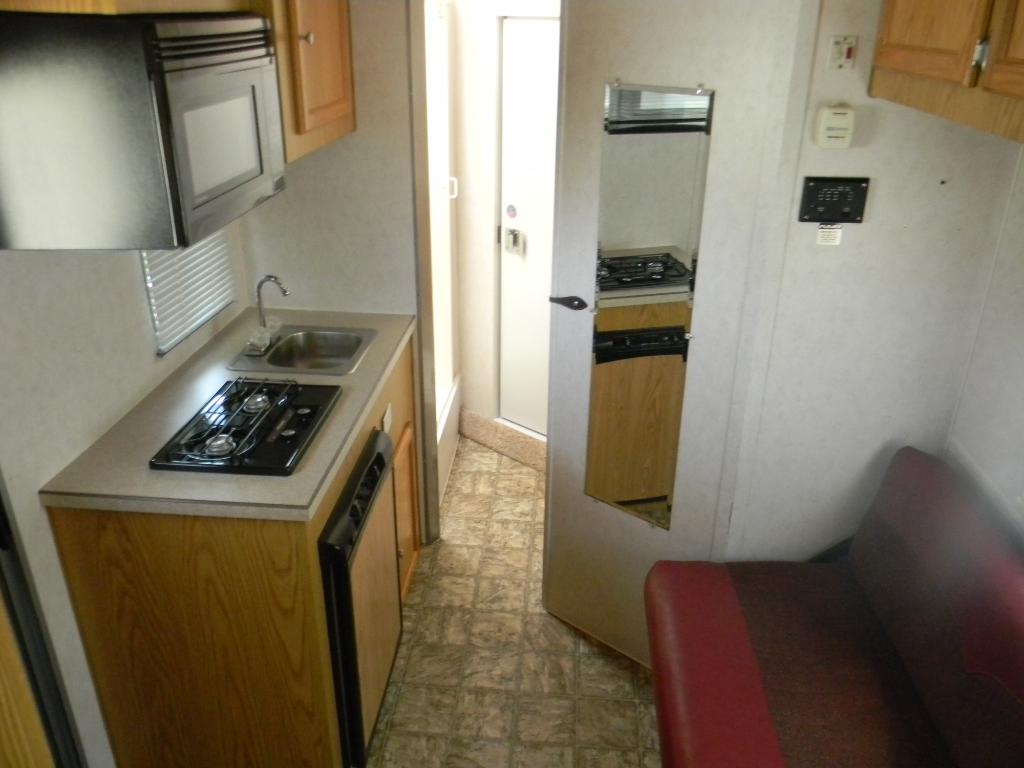 Good size kitchen with mini refrigerator, microwave and 2 burner gas stove