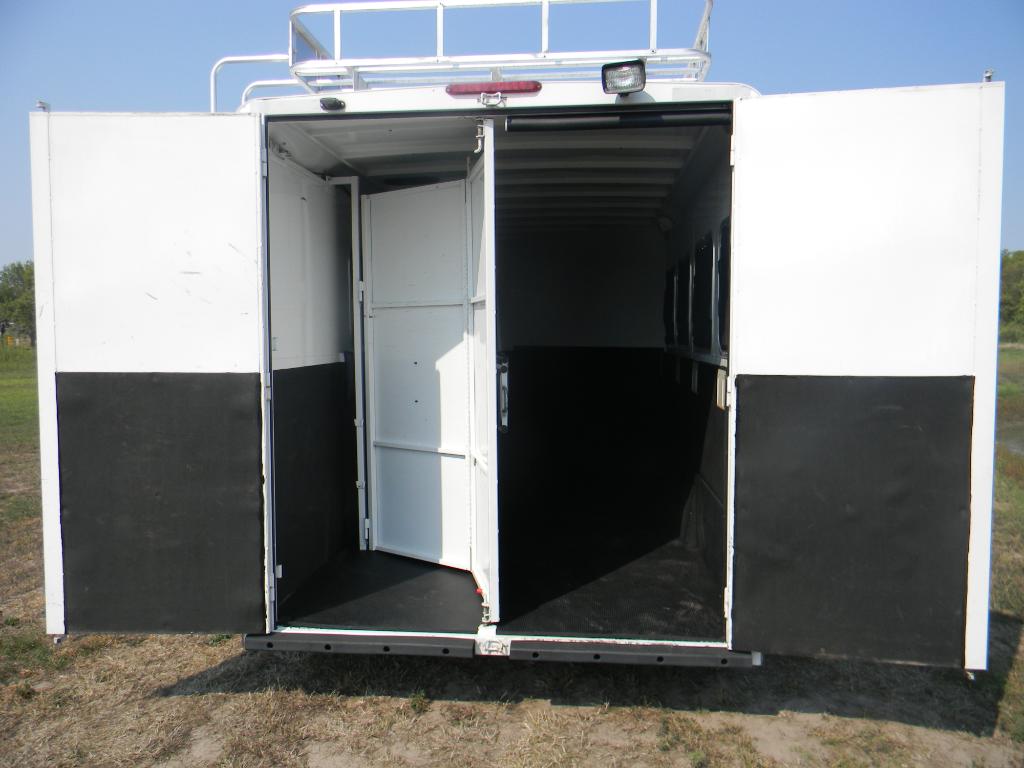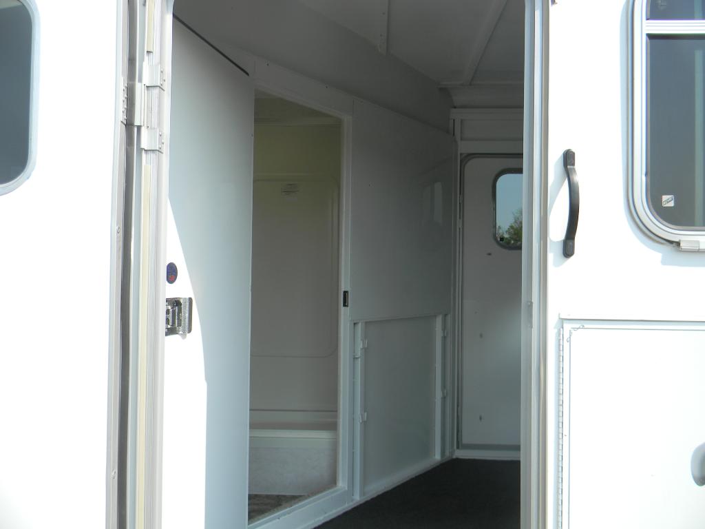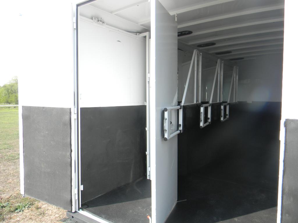 Tack room in back of trailer with adjustable wall